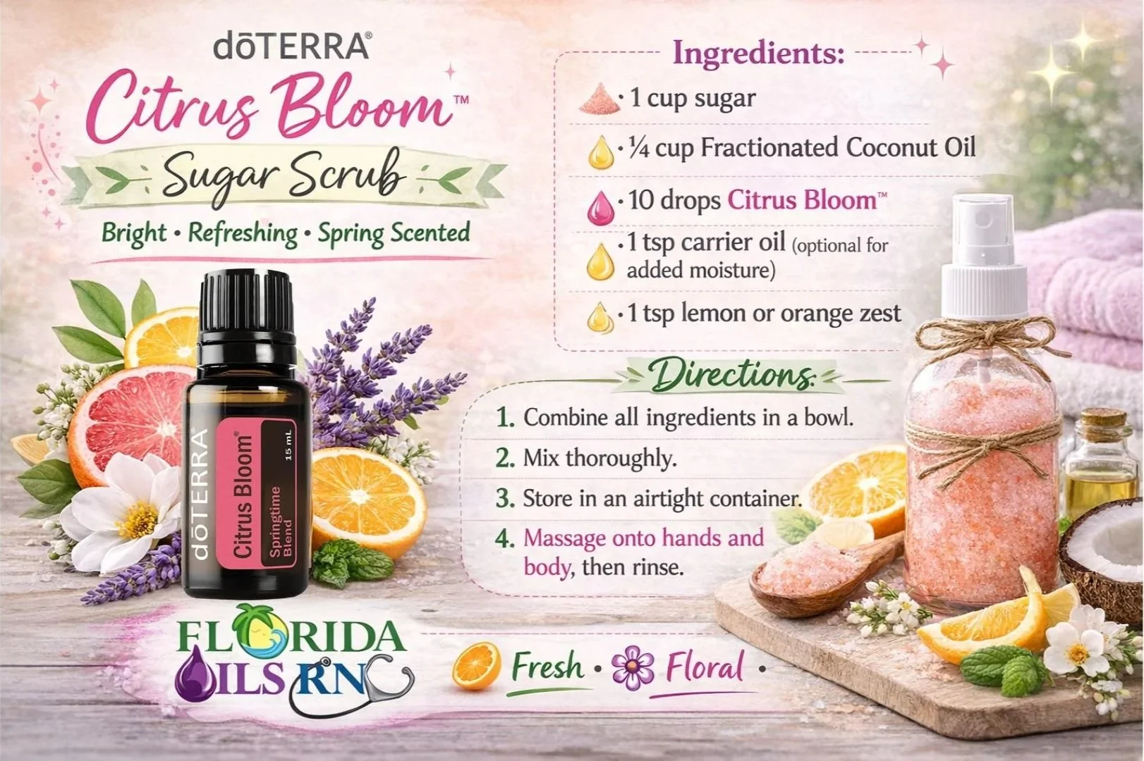 Citrus Bloom fits naturally into intentional self-care practices. During journaling, reflection, or quiet reading, diffusing the oil can support mental clarity while maintaining a relaxed atmosphere. When added to a warm bath—properly diluted in a carrier oil or bath emulsifier—the blend can create a sensory experience that feels both refreshing and calming.